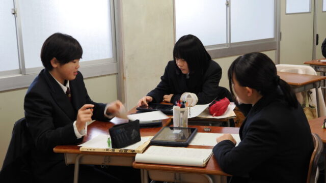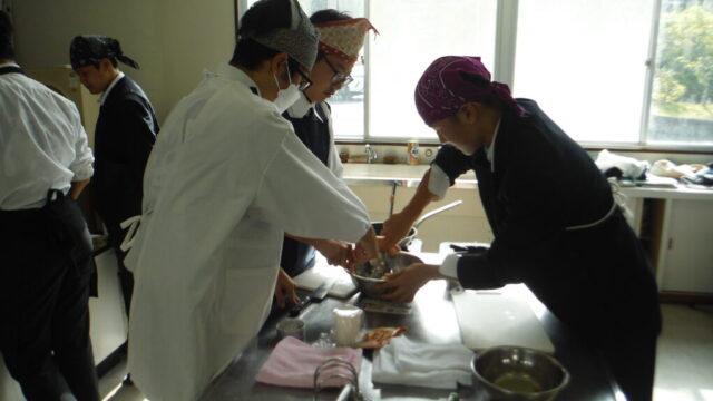 11月中旬の1年生「家庭基礎」の調理実習風景です。 この日のレシピは、「サツマイモのおやき」で、地元で収穫された旬のサツマイモを用い、調理実習に臨みました。 試食した生徒たちは、秋の味覚のおいしさに満足し...