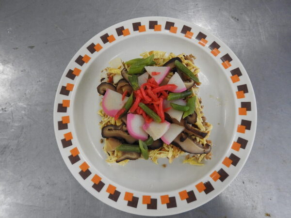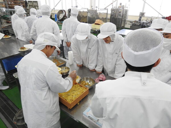 食品経済コース 11月20日(木)、食品経済コース2年生「総合実習」において、株式会社 とり松 小幡 竜介 様を講師にお迎えし、「丹後ばらずし」の製法の指導を受けました。